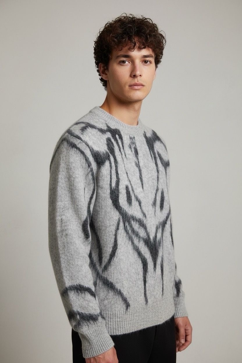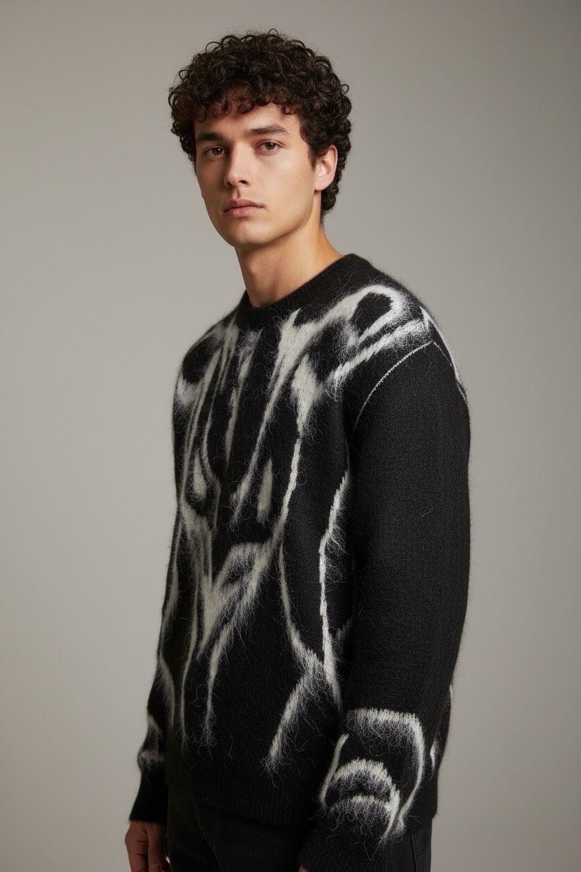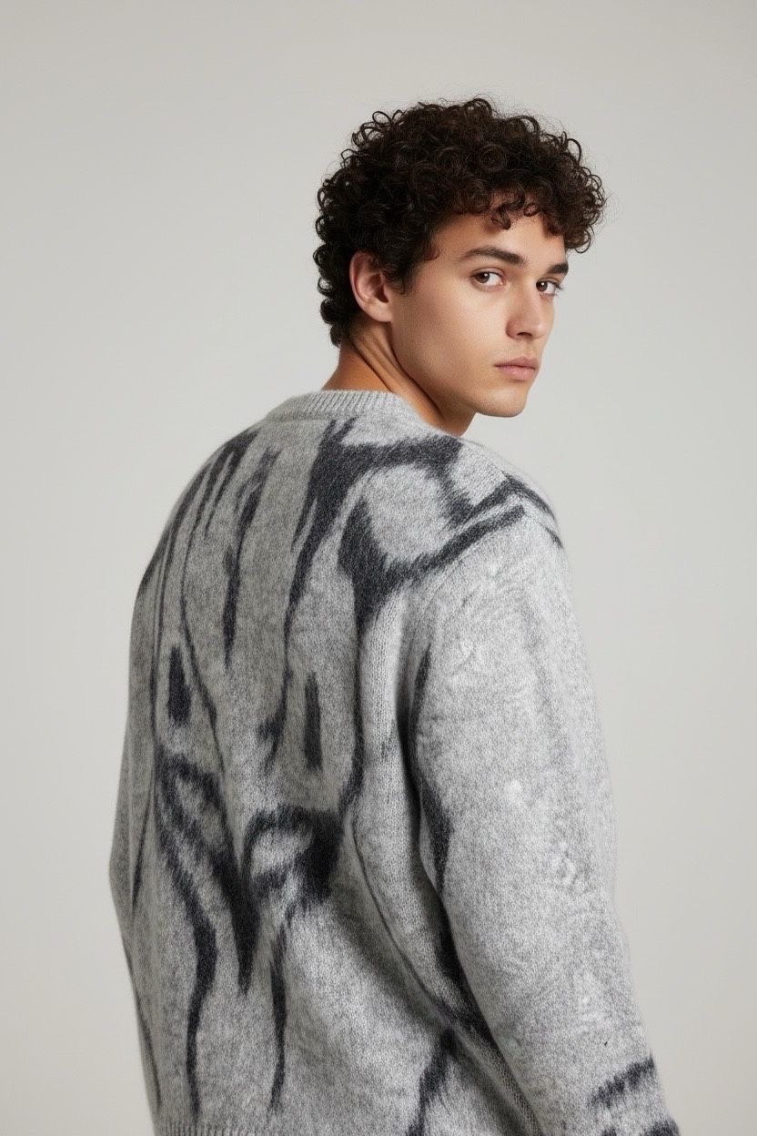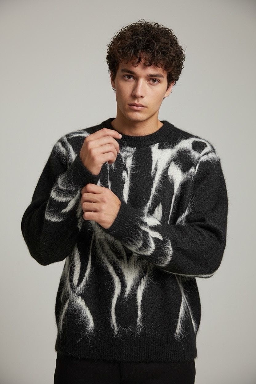 Le Graphik, c’est du caractère sans effort. Motif abstrait gris sur noir (ou inversé), tricot doux qui tient chaud. Tu l’enfiles, ta tenue est faite.
